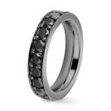Anillo de diamante negro engastado con 4 rieles de grano - Vuelta completa 3 mm / 2 quilates