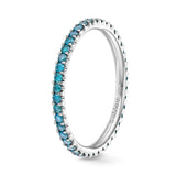 Anillo de vuelta completa, engastado con diamantes azul celeste, naturales y tratados.
