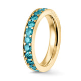 Anillo engastado en círculo completo con diamantes azul celeste, naturales y tratados.