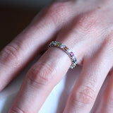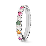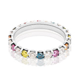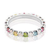 Alianza de matrimonio de vuelta completa, diamantes Joy of Color con los 8 colores del arco iris alternando con diamantes blancos D / F VS.