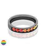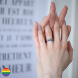 Anillo engastado en 2/3 de vuelta con zafiros en los colores de la famosa Bandera Arcoíris.
