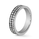 Anillo muy actual, de 4,2 mm de ancho y compuesto por 2 hileras de diamantes de 1,5 mm de diámetro.